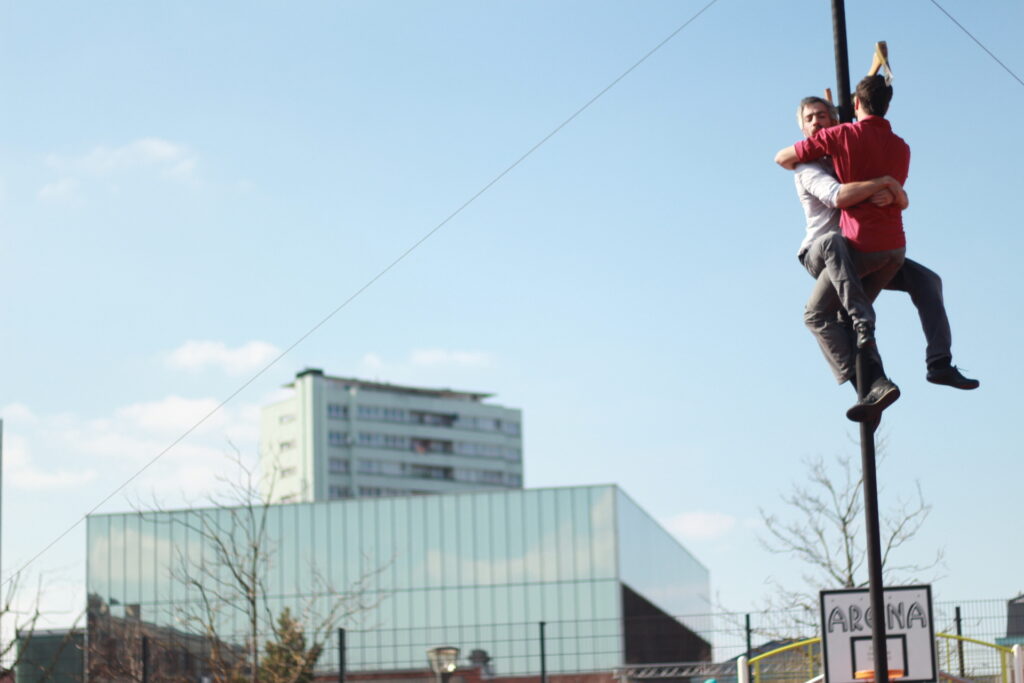 La imagen de un derrumbe, 1/2 kg de polvo de magnesio y dos acróbatas, que en el proceso creativo oscilaron entre un cuerpo que ensaya y un cuerpo cotidiano, dieron lugar a la siguiente pregunta: ¿Qué emociones predominan en las personas cuando se acerca una catástrofe? Viernes 3 de noviembre, 23:00 horas en El Galpón de Guevara, entradas por Alternativa Teatral.