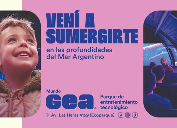 Gea Marina es el espacio de entretenimiento diseñado para explorar y aprender sobre los diferentes ecosistemas marinos. Entre sus principales atracciones se encuentra el espectacular simulador “Odisea submarina” donde el público podrá sumergirse en un fascinante viaje y explorar el Mar Argentino. También forman parte del espacio los juegos de realidad virtual y el museo del mar con especies en un imponente tamaño real.