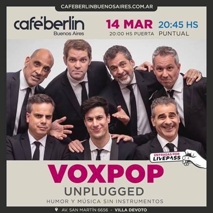 VOXPOP es una banda única en Argentina. Se formó en Buenos Aires en el año 2002 como respuesta al desafío de hacer música sin instrumentos y nunca dejó de crecer. A lo largo de su trayectoria, ha desarrollado una notable reputación por la originalidad de sus versiones de temas de diversos estilos.  De esta forma VOXPOP ha ganado la fama de una “auténtica banda de rock sin instrumentos”.