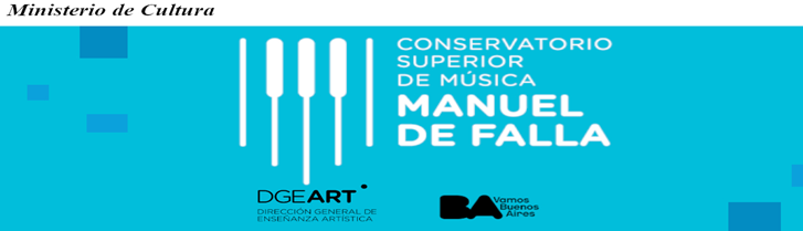 El Conservatorio Superior de Música Manuel de Falla, presenta distintos Conciertos, con entrada libre y sin cargo; especialmente pensado para que los estudiantes, docentes y graduados/das de los Conservatorios y programas de capacitación artística que integran la DGEART tengan un espacio de práctica profesional, como así también, invitamos a concurrir a los vecinos de la ciudad para que disfruten de una propuesta cultural accesible y de calidad.