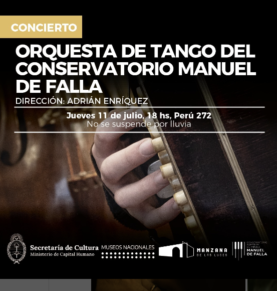 La Manzana de las Luces, en su sala de Representantes, sita en Perú 272 de CABA, presenta a la nueva formación de la Orquesta de Tango del Conservatorio Manuel de Falla, dirigida por Adrián Enríquez. Con 30 músicos en escena, esta orquesta atípica nos deleitará con un adelanto de su primer disco ‘La Marca’.