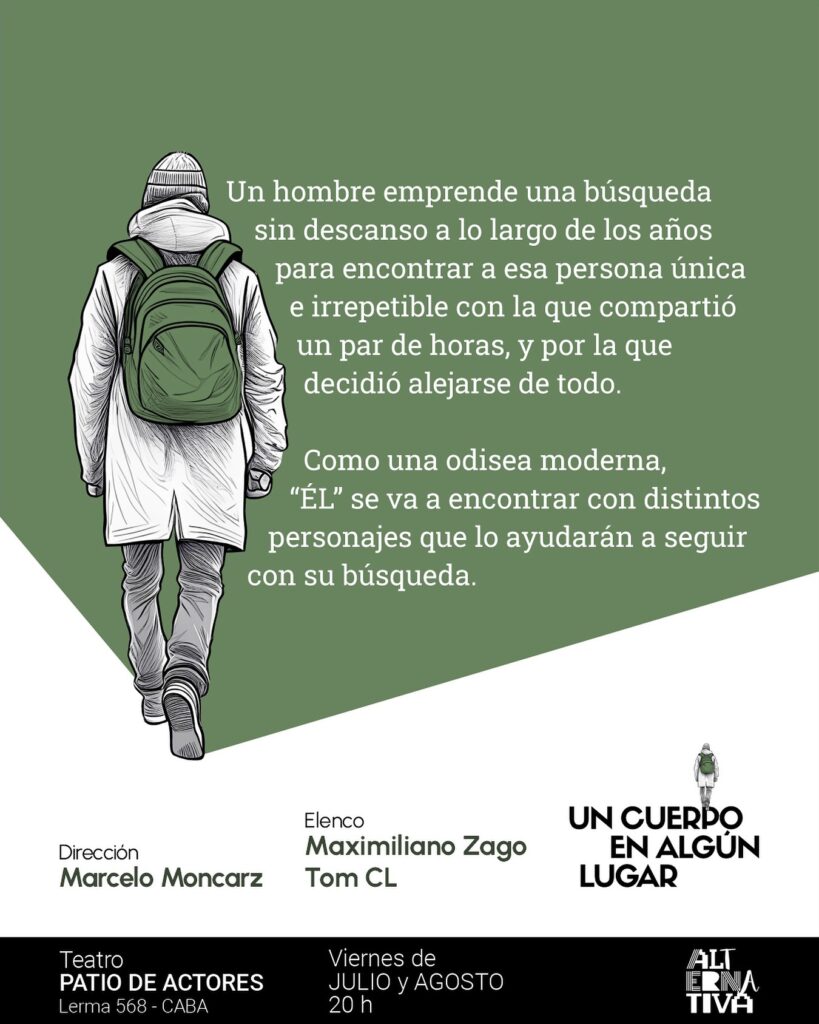 En el Patio de Actores sigue presentándose con una excelente aceptación de público “Un cuerpo en algún lugar”, con dramaturgia de Gon Ramos, dirección de Marcelo Moncarz y las actuaciones de Tom CL y Maximiliano Zago. Las funciones son los viernes de julio y agosto a las 20:00 horas.