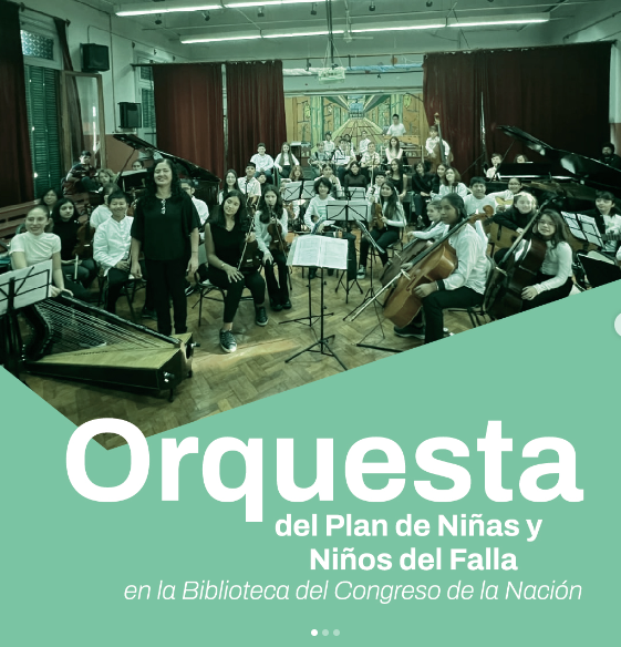 Este lunes 26 de agosto la Orquesta del Plan Niñas y Niños del Falla ofrecerá un concierto en el Auditorio de la Biblioteca del Congreso de la Nación, sita en la Ciudad Autónoma de Buenos Aires.