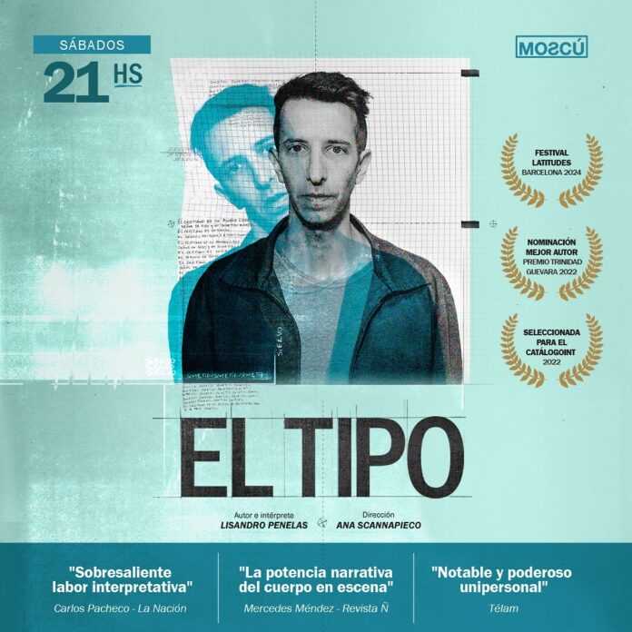 El unipersonal “El Tipo”, con autoría e interpretación de Lisandro Penelas y dirección de Ana Scannapieco, se presenta en Moscú Teatro, los días sábados a las 21:00 horas.