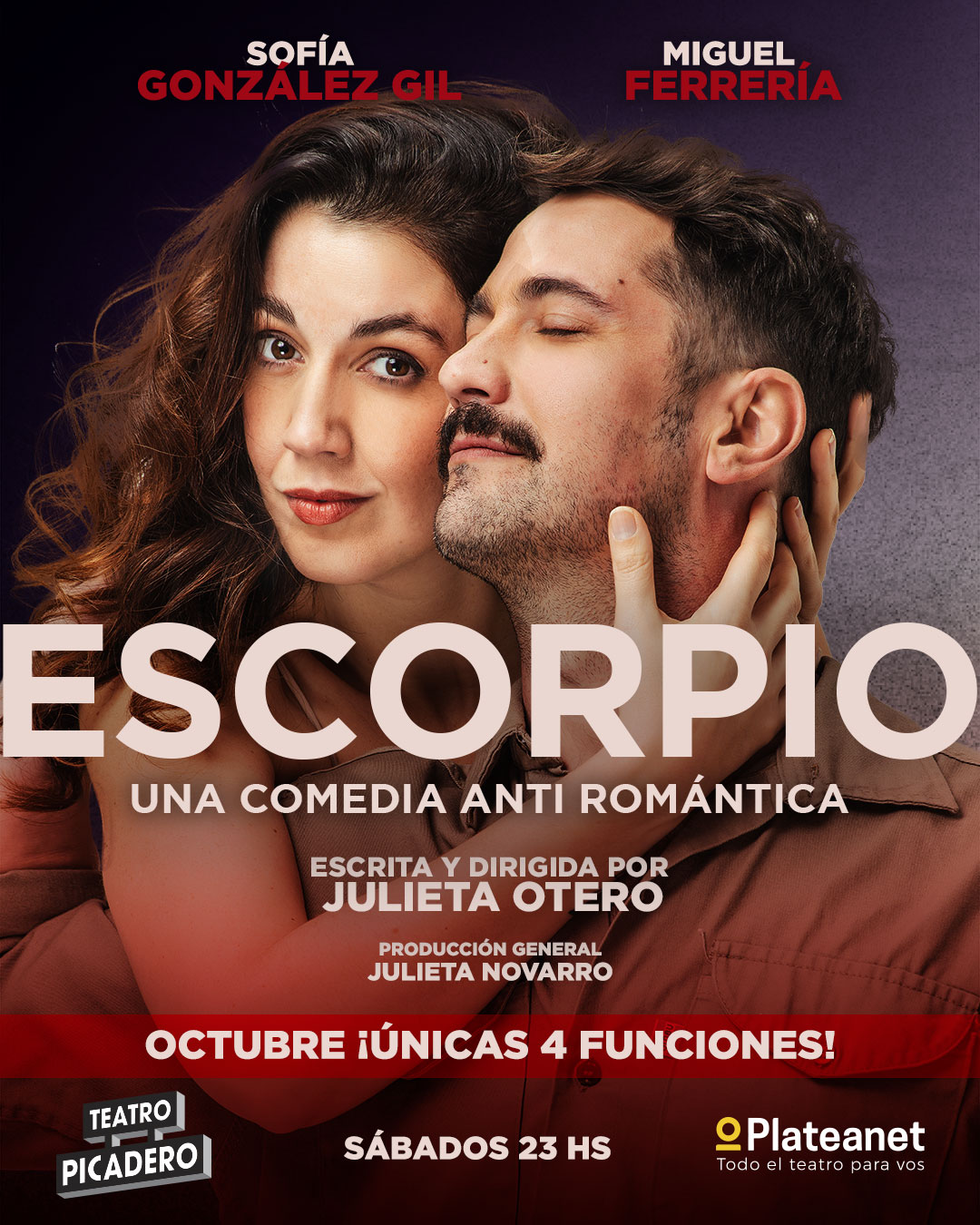 Llega por solo 4 únicas funciones al Teatro Picadero “Escorpio”, con dramaturgia y dirección de Julieta Otero, las actuaciones de Sofía González Gil y Miguel Ferrería y la música original esta a cargo de Juan Ignacio López.