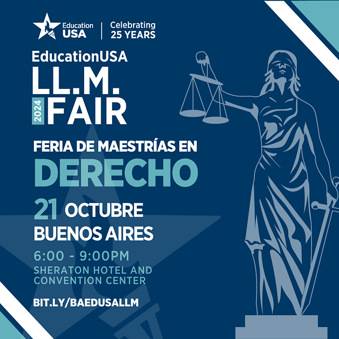 EducationUSA, la red global de más de 430 centros de asesoría estudiantil apoyada por la Oficina de Asuntos Educativos y Culturales del Departamento de Estado de los Estados Unidos, invita a estudiantes, abogados y profesionales del derecho a participar en la Feria de Maestrías en Derecho (LL.M Fair 2024). En este evento, algunas de las universidades más prestigiosas de Estados Unidos presentarán sus programas de posgrado en derecho.
