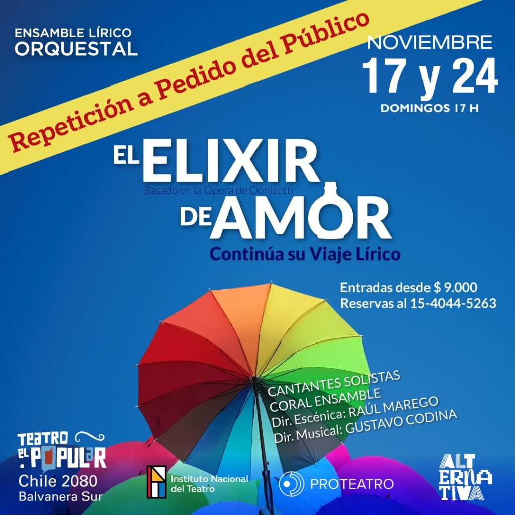 Ensamble Lírico Orquestal presenta: Ópera en El Popular. Ciclo de Espectáculos Líricos. Segundo Título: “EL ELIXIR DE AMOR”. Viaje lírico basado en la ópera de Donizetti – ¡NUEVAS FUNCIONES!