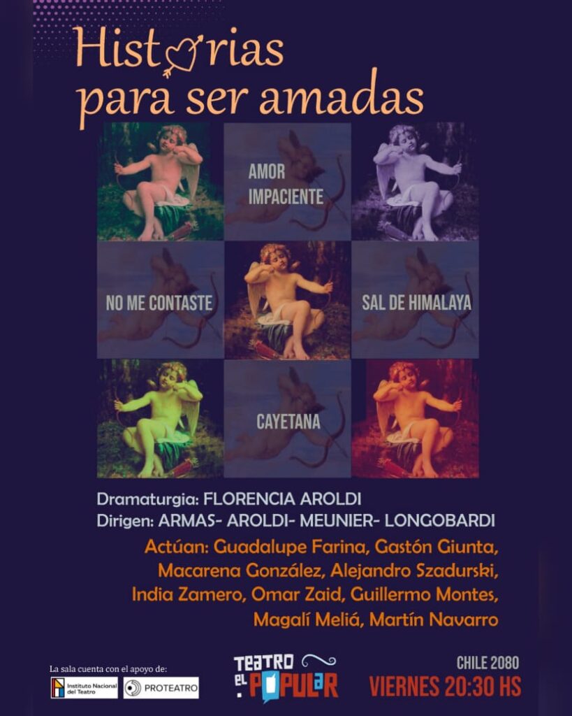Historias para ser amadas es un espectáculo que reúne cuatro obras breves de Florencia Aroldi que indagan, con humor, los vínculos interpersonales.
