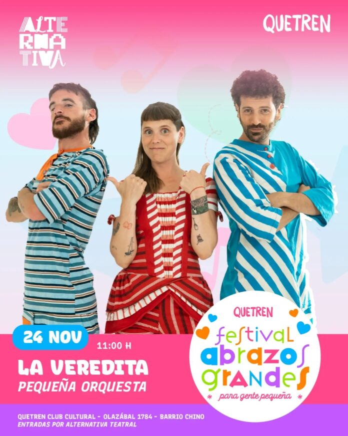 El domingo 24 de noviembre, La Veredita Pequeña Orquesta se presenta en el marco del Festival Abrazos Grandes para gente pequeña, en Quetrén Quetrén.