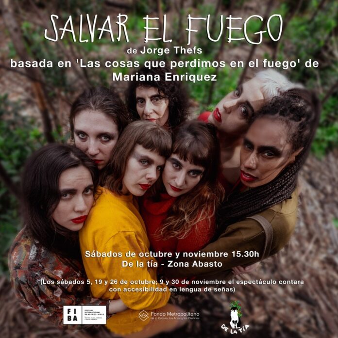 A partir de octubre llega a De la Tía Espacio la obra “Salvar el Fuego”, con dramaturgia, adaptación y dirección de Jorge Thefs y las actuaciones de Victoria Duarte, Gabi Moura, Sol Rieznik Aguiar, Magui Downes, Jazmín Siñeriz, Myriam Ramírez, Daira Escalera, Juliana Ortiz y Natalia Tesone.