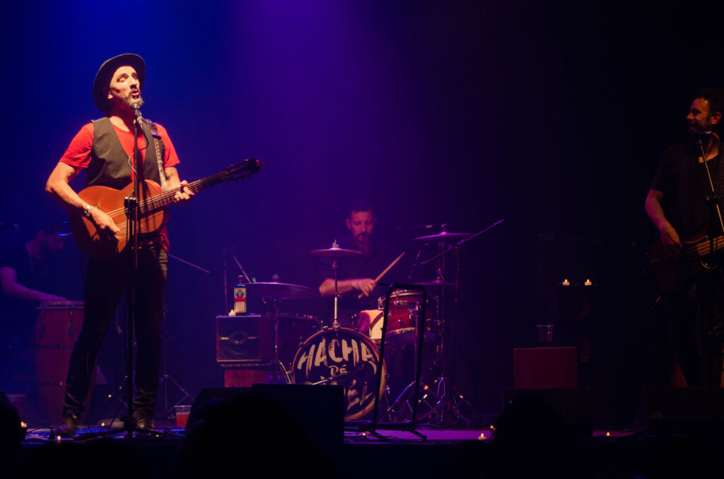 Actuaciones aclamadas: Desde la icónica Sala Zitarrosa en Uruguay hasta la celebración cultural en la Feria del Libro en La Paz, Bolivia, pasando por la reciente gira a Chile y la vibrante atmósfera del LA TANGENTE en Argentina, HACHA DE PAPEL ha dejado una marca indeleble en cada escenario que pisan.