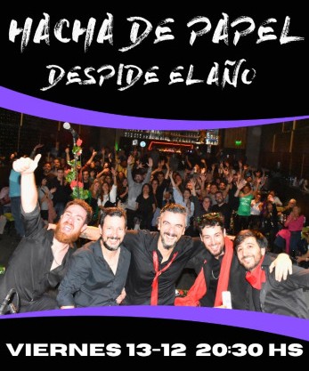 HACHA DE PAPEL, uno de los grupos de rumba y folk rioplatense más destacados en la escena de World Music en América Latina, te invita a una noche única para celebrar el cierre del año. Trae a tus amigos y viví una experiencia inolvidable llena de música, alegría y buena vibra.