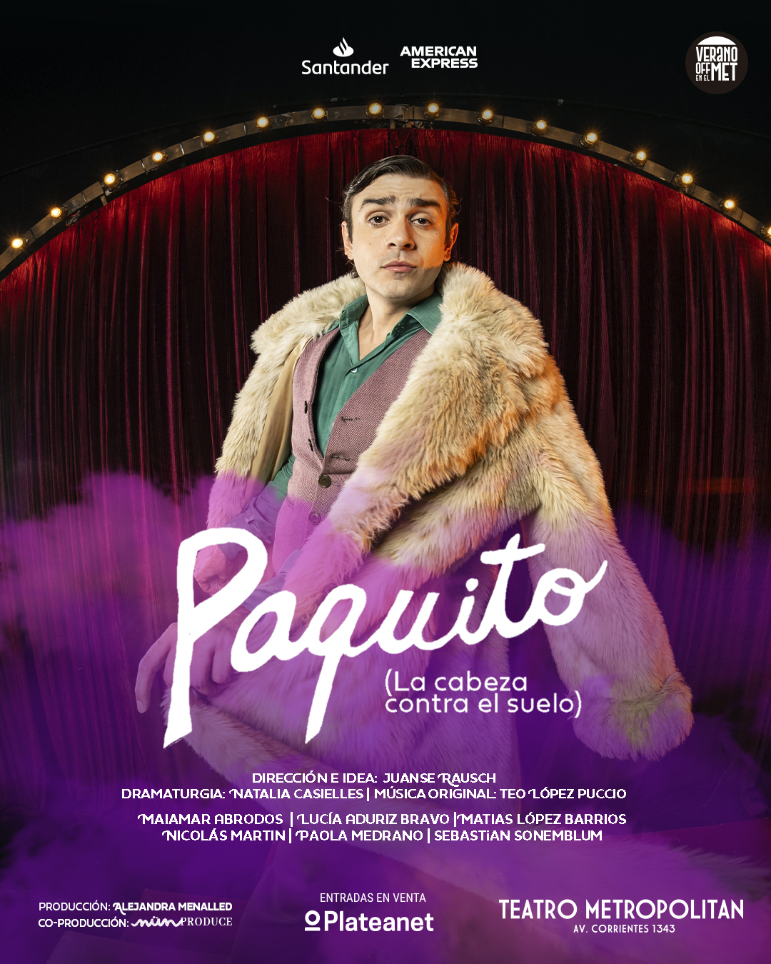 A partir del 09 de enero sube a escena “Paquito (La cabeza contra el suelo), de Natalia Casielles, sobre una idea original de Juanse Rausch el cual es el director de la obra y cuenta con las actuaciones de Nicolás Martin, Maiamar Abrodos, Lucía Adúriz Bravo y Matías López Barrios.