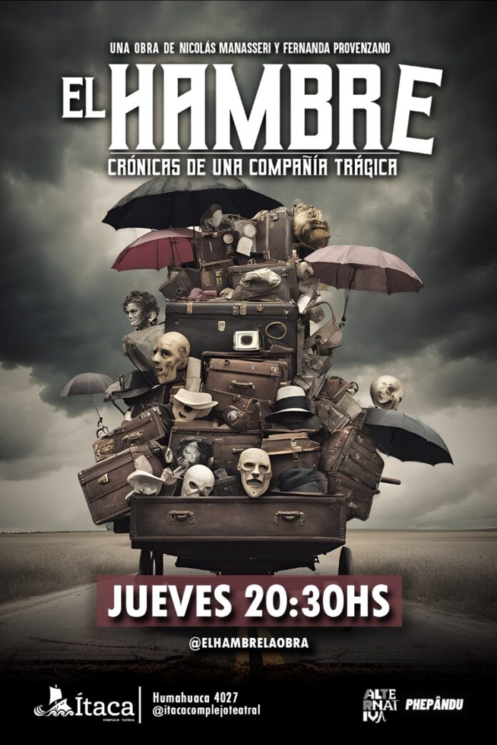 “EL HAMBRE, Crónicas de una compañía trágica” es una creación que se desprende del Laboratorio de Creación de PHEPANDÚ en 2023, dirigido por Nicolás Manasseri y Fernanda Provenzano. La obra toma forma en el 2024 con un nuevo guion y formato, de parte de sus creadores, realizando su primera temporada ese mismo año.
