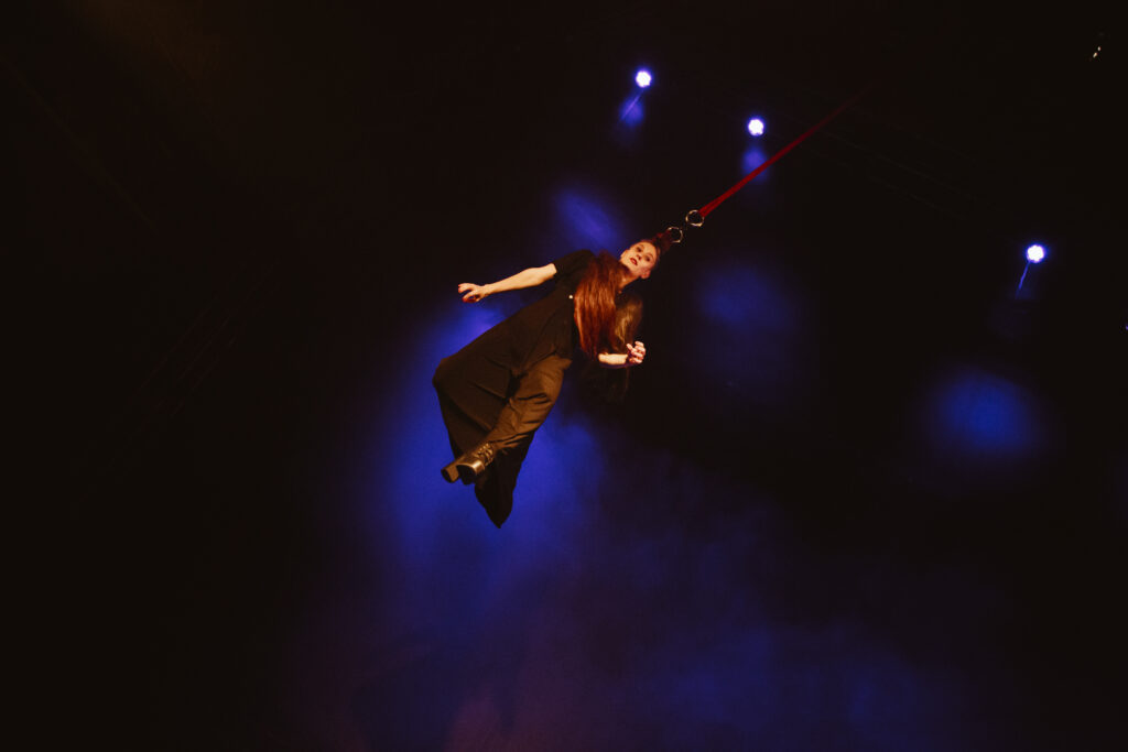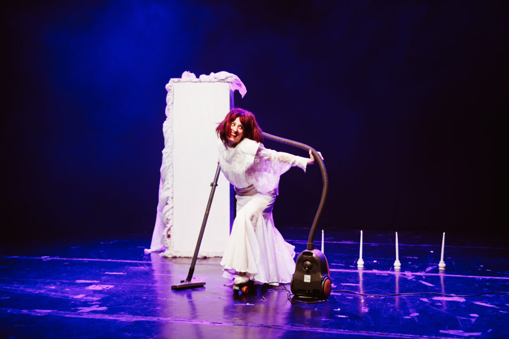 A través de un lenguaje absurdo, poético y tragicómico se cruza la danza, el teatro físico y el circo lleno de imágenes y potencia visual. Una pieza conmovedora, divertida e impactante por su belleza, crudeza y verdad. El cuerpo de la actriz es el territorio y canal encarnando múltiples personajes, sus transformaciones y cruce de lenguajes