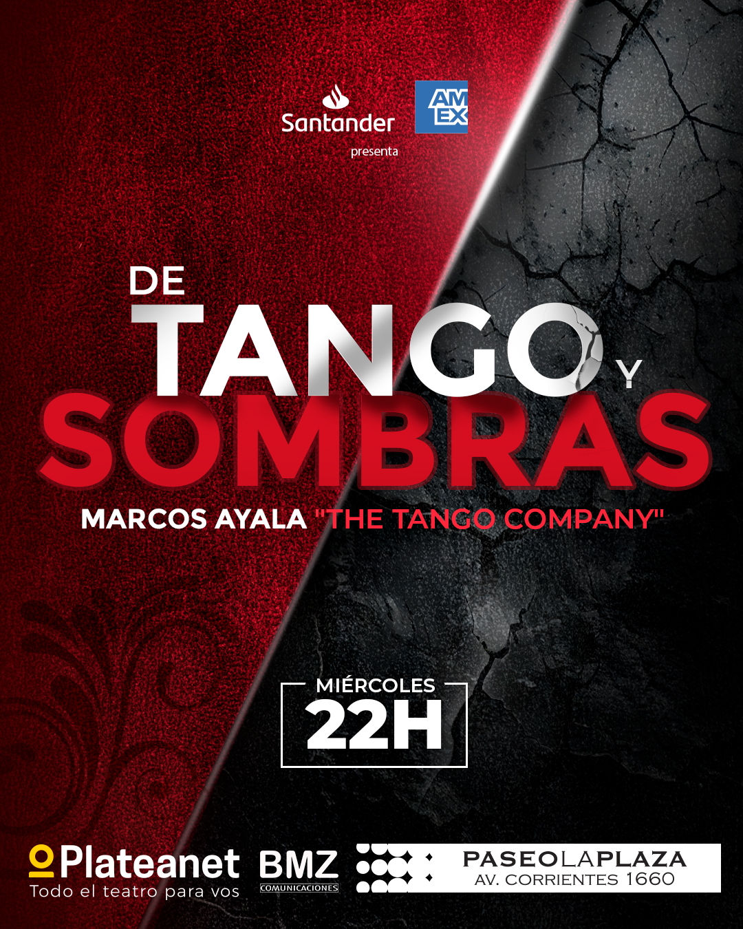 Luego de una exitosa gira por Rusia, China y Europa, llega a escena el espectáculo que fusiona la potencia del teatro musical con la fuerza expresiva de la danza “DE TANGO Y SOMBRAS”, creado por el referente masculino del tango en Argentina,Marcos Ayala