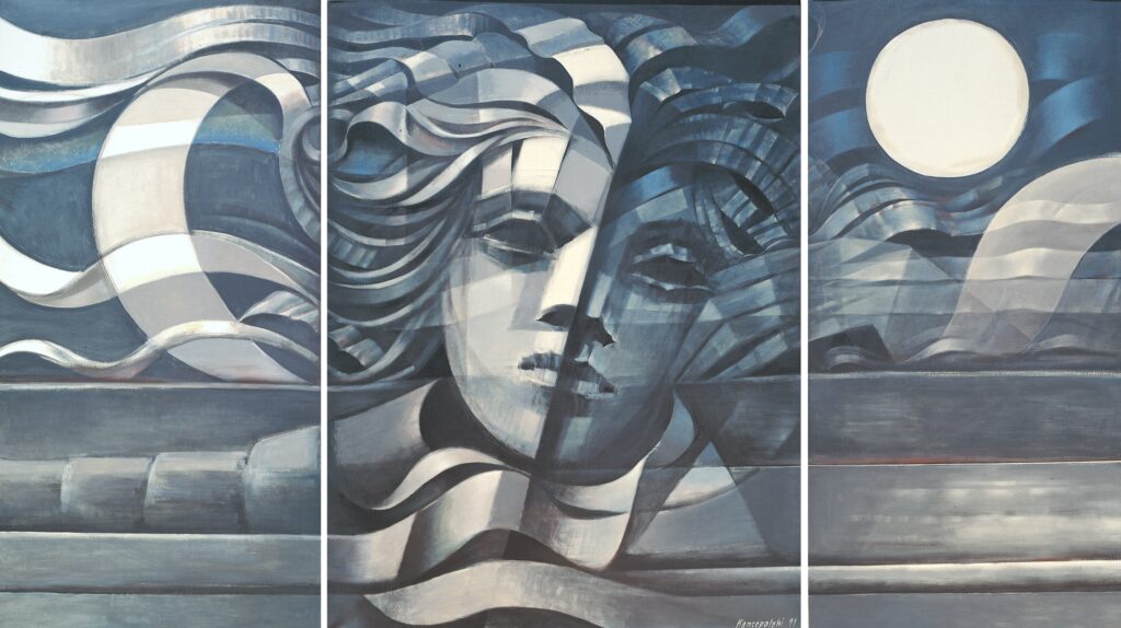 “En un cuadro de Kancepolski hay 100 cuadros conviviendo a la vez”, dijo una vez el artista mendocino Julio Le Parc y sus palabras resuenan en los lienzos seleccionados para Mítica. Con curaduría del prestigioso académico brasilero Jesualdo Correia, en ellos se puede distinguir un sinfín de mitos universales, desde la expulsión del paraíso de Adán y Eva hasta el huevo cósmico, motivo recurrente en mitos de la cultura hindú, china y egipcia.
