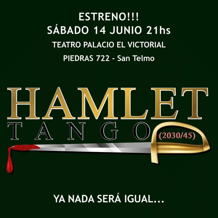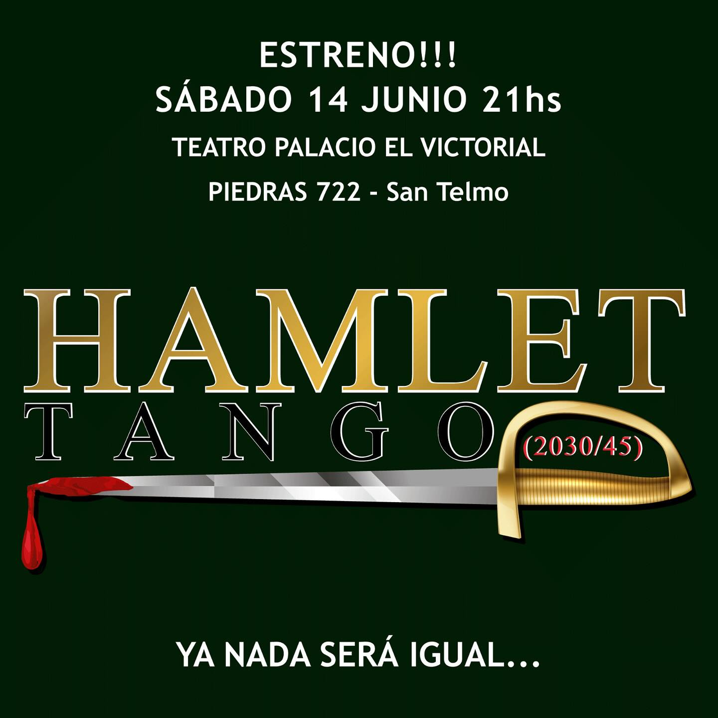 Una versión libre de Gabriel Daneri, del inmortal clásico Shakesperiano, el cual respeta el conflicto emocional original, con una comprensión y un lenguaje más cercano. Lo sitúa en otro lugar: quizás el País del Tango? No lo sabemos, pero el vestuario y la música nos lleva al tango, que también enmarca toda la acción, las estrategias del poder global y el trasvasamiento atemporal. Con un final sorpresivo, distinto al original. “HAMLET TANGO (2030/45)”, interpretada por 8 actores, con una duración de 1 hora 40 minutos, donde la palabra y la acción, no tienen pausa.