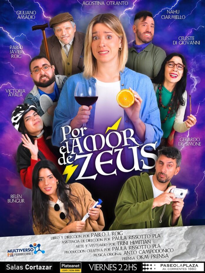 Por el amor de Zeus es una comedia de enredos escrita y dirigida por Pablo Roig, que combina mitología griega, romance moderno y una cuenta regresiva mortal. Cuarta temporada de esta comedia que está protagonizada por: Pablo Roig, Agostina Otranto, Celeste Di Giovanni, Nahuel Ciarmiello, Giuliano Amadio, Victoria Ayala, Gerardo De Simone, Belén Bungur.