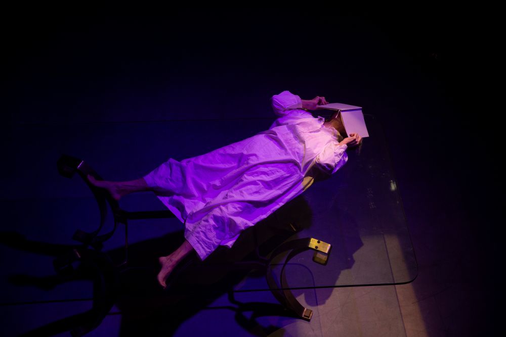 Primero fue mi amigo Agustín desde Madrid: “En lugar del aceite de oliva, quiero llevarte un libro de poemas”. Le respondí: “Tráeme sonetos de Quevedo”. Recibí los dos tomos de su Poesía Completa. Pensé: Esto es un tesoro. Tengo que hacer algo. El tema era como traer a Arthaus la mesa de cristal de 2,60 metros de la casa de mi madre, que acababa de vender. Gracias a Arthaus la mesa está hoy aquí. Propuse hacer sobre ella sonetos y algunos poemas satíricos de Quevedo: Una partitura abismada. Tal vez es más un homenaje a mi madre, Nelly Prince, pionera de la televisión argentina, actriz, locutora, cantora exquisita de tangos, más que al inmenso, infinito, extraordinario Quevedo. Tal vez en estos tiempos oscuros la poesía sobre un cristal sea un acto de resistencia inquebrantable, una epifanía sobre fondo del horror.