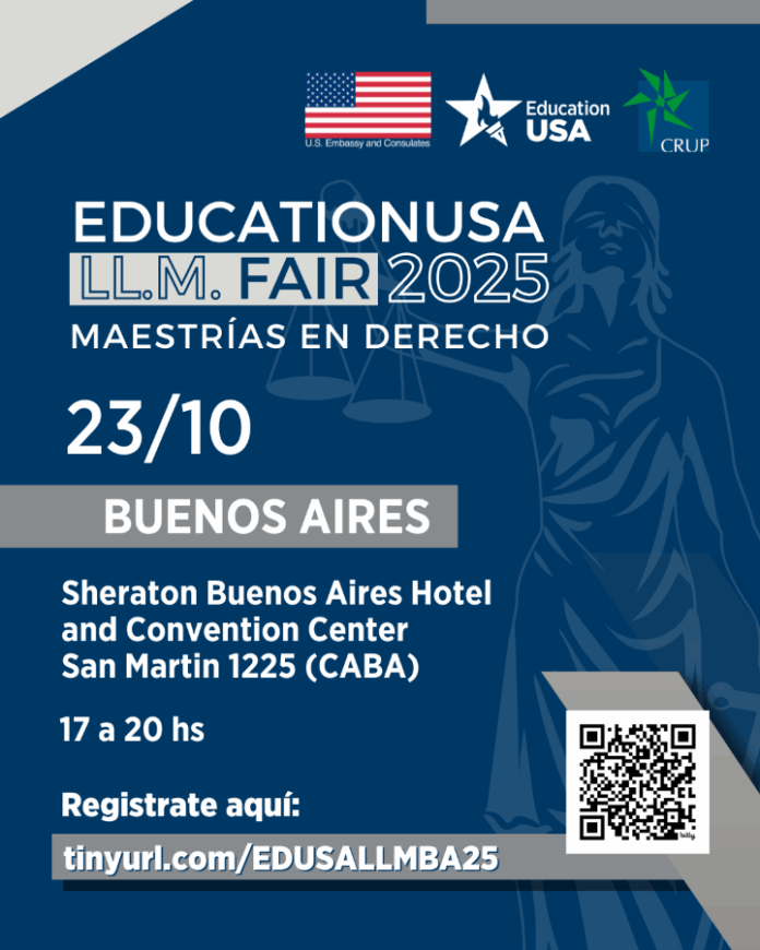 EducationUSA Argentina, con el apoyo del Departamento de Estado de los Estados Unidos, la Embajada de los Estados Unidos en la Argentina y el Consejo de Rectores de Universidades Privadas (CRUP), anuncia la realización de la Feria de Maestrías en Derecho (LL.M Fair 2025).