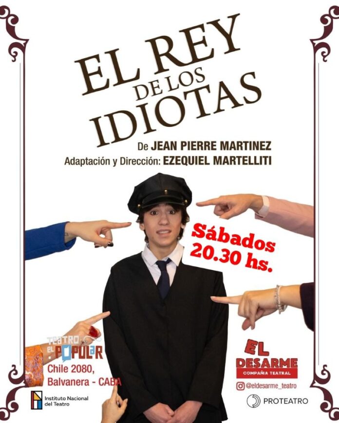 Con autoría de Jean Pierre Martínez y adaptación de Ezequiel Martelliti llega el estreno de “El rey de los idiotas”, con las actuaciones de Toto Deambrogi, Cony Fernández, Candela Finkelstein, Gleisy Paredes Cotamo, Naty Pupi García y Federico Vilar, bajo la dirección de Ezequiel Martelliti.