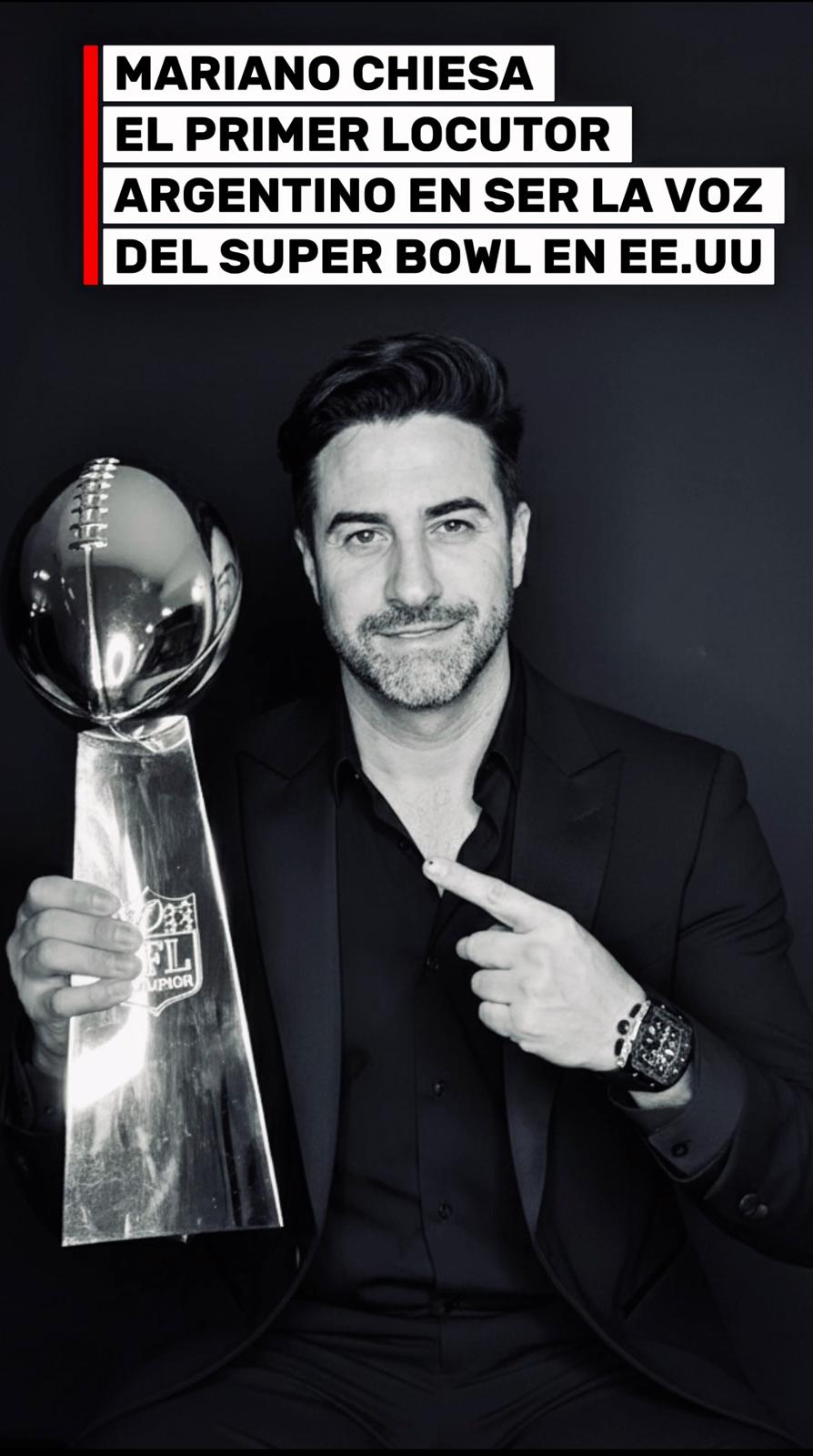 Luego de anunciar durante toda la temporada los partidos de la NFL, el actor y locutor Mariano Chiesa marcó un hito al convertirse este fin de semana en el primer locutor argentino en ponerle voz a lafinal del Super Bowl en los Estados Unidos, convocado por Telemundo, canal titular de los derechos de transmisión en español de la NFL.