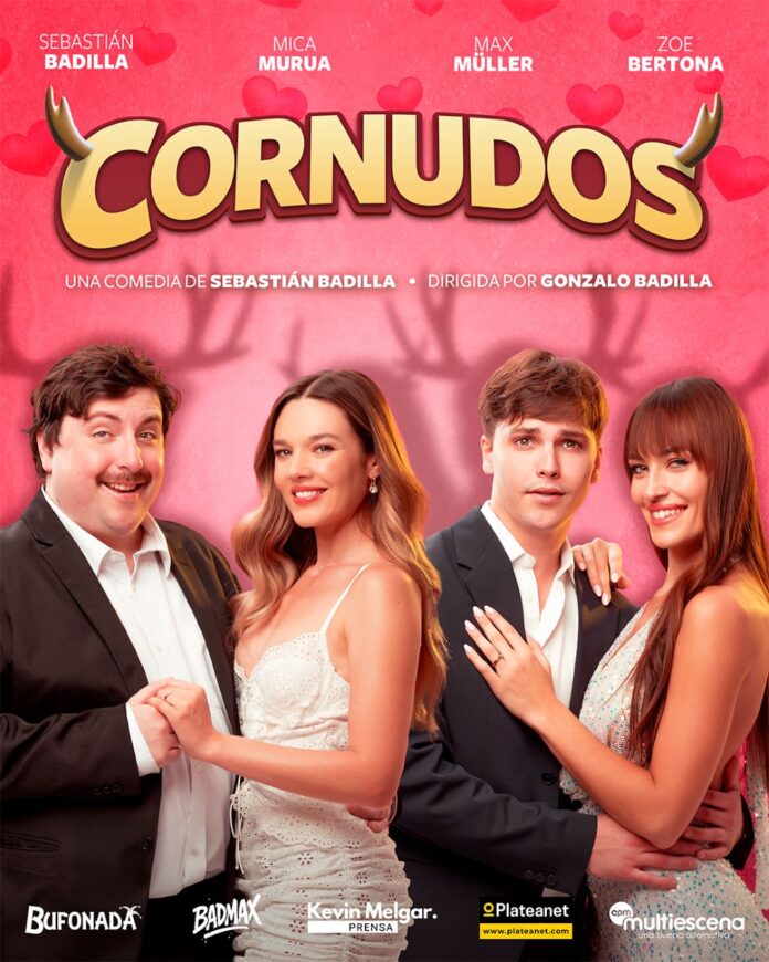 El próximo jueves 05 de marzo a las 22:15 horas, se estrena en el Teatro Multiescena “Cornudos”, la nueva comedia escrita, producida y protagonizada por Sebastián Badilla, con dirección de Gonzalo Badilla. Y un elenco integrado por Mica Murua, Sebastián Badilla, Zoe Bertona y Max Müller, quienes dan vida a esta delirante historia de parejas, celos, sospechas y traiciones cruzadas.