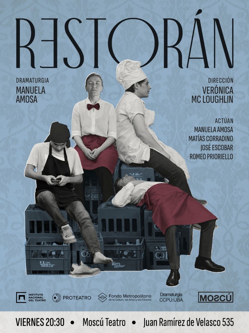 El 20 de marzo sube a escena “Restorán”, con dramaturgia de Manuela Amosa, dirección de Verónica Mc Loughlin, la música a cargo de Nicolás Diab y cuenta con las actuaciones de Manuela Amosa, Matías Corradino, José Escobar y Romeo Prioriello.