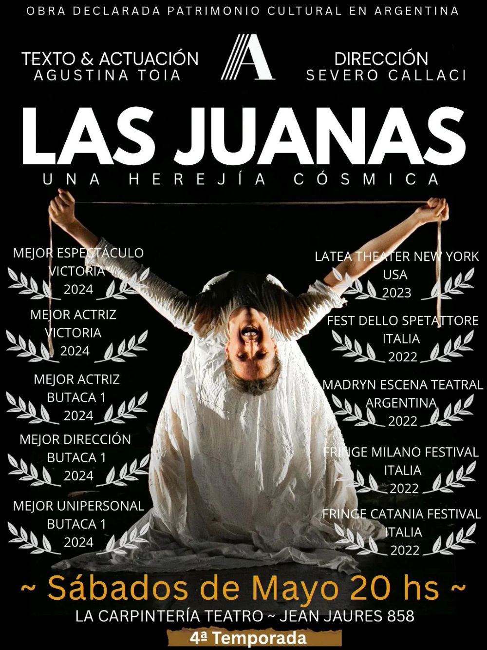 Luego de una exitosa temporada 2025 de siete meses a sala llena, regresa a la cartelera porteña “Las Juanas, una herejía cósmica”, el unipersonal escrito por Agustina Toia y dirigido por Severo Callaci.