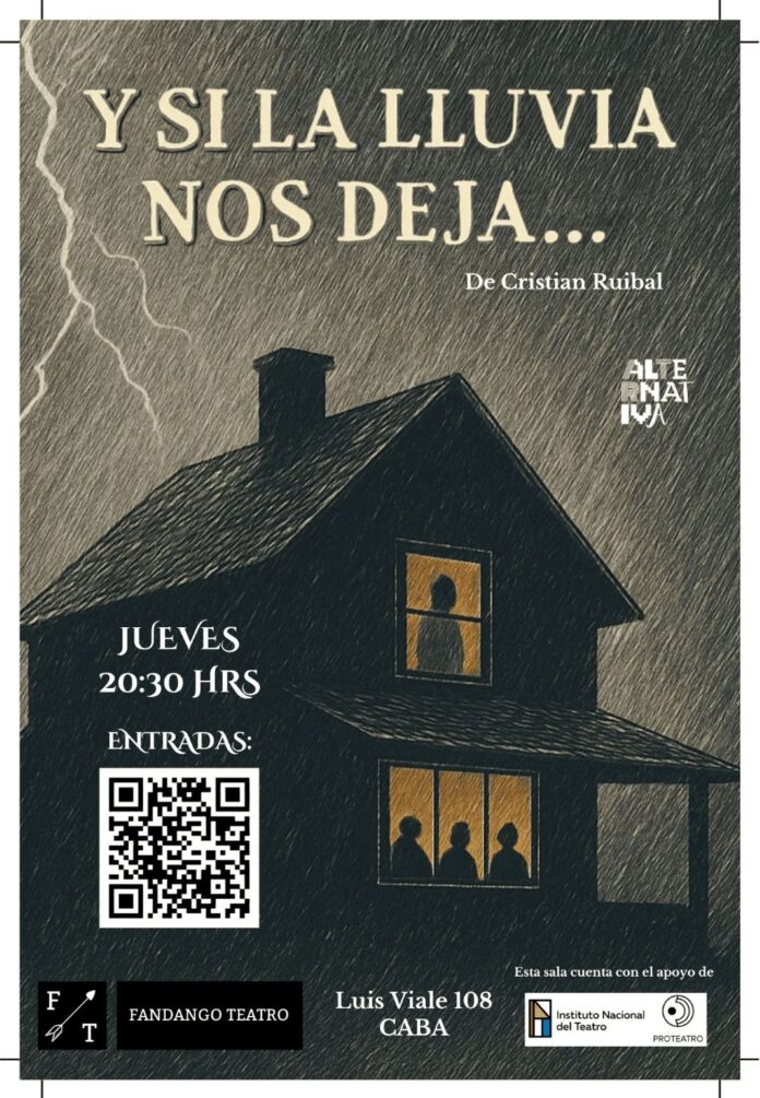 “Y si la lluvia nos deja” es un drama intimista que se adentra en las grietas de una familia atravesada por el silencio, el dolor y los secretos no dichos. Con una puesta que utiliza la lluvia como un elemento dramático central — un aislamiento que obliga a los personajes a quitarse las máscaras —, la obra invita al espectador a preguntarse si es posible soltar el pasado cuando aún reclama justicia.